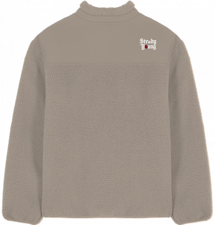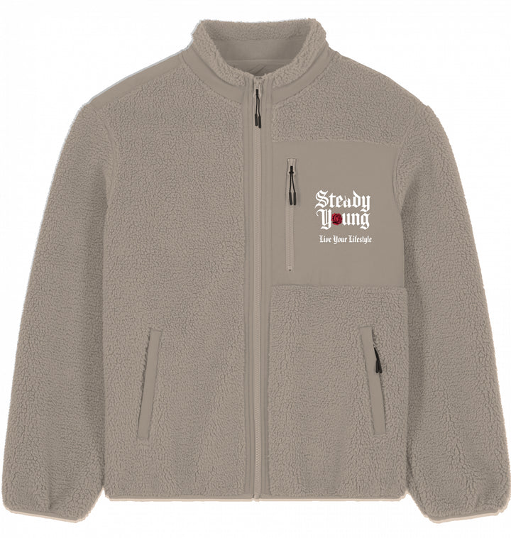 Unisex-Sherpa-Jacke | Set-In-Ärmel | Elastische, recycelte Einfassung an Bündchen und Saum | Innere Rückenhals-Einfassung aus recyceltem Material und Nackenband | Kunststoff-Vislon-Reißverschluss mit Metallzug und Kordelende | Vollständig verbundene innere Polarfleece-Schicht und Anti-Pilling-Finish | Vordere seitliche Kontrast-Softshell-Paspeltaschen mit verdecktem Reißverschluss | Kontrast-Softshell-Stoff an Tasche, Rückenpasse und äußerem Kragenband | Innenliegender unsichtbarer Reißverschluss auf der linken Brustseite für einfache Veredelung