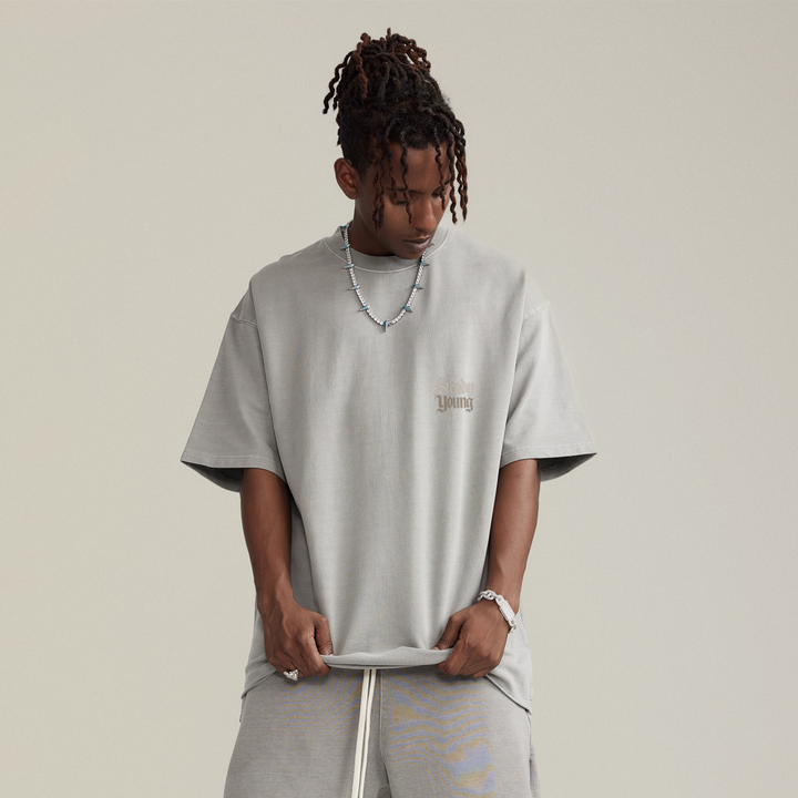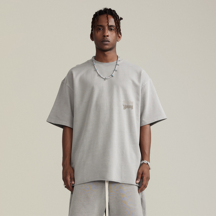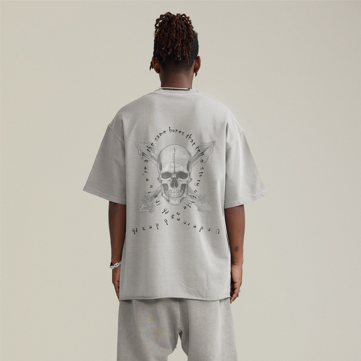 steadYYoung 260GSM Faded Raw Hem Tee Skull
